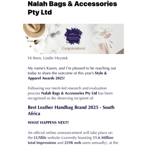 #AwardWinning #LUXlifeAwards #LuxuryLifestyle #SmallBusinessSouthAfrica #nalahbags